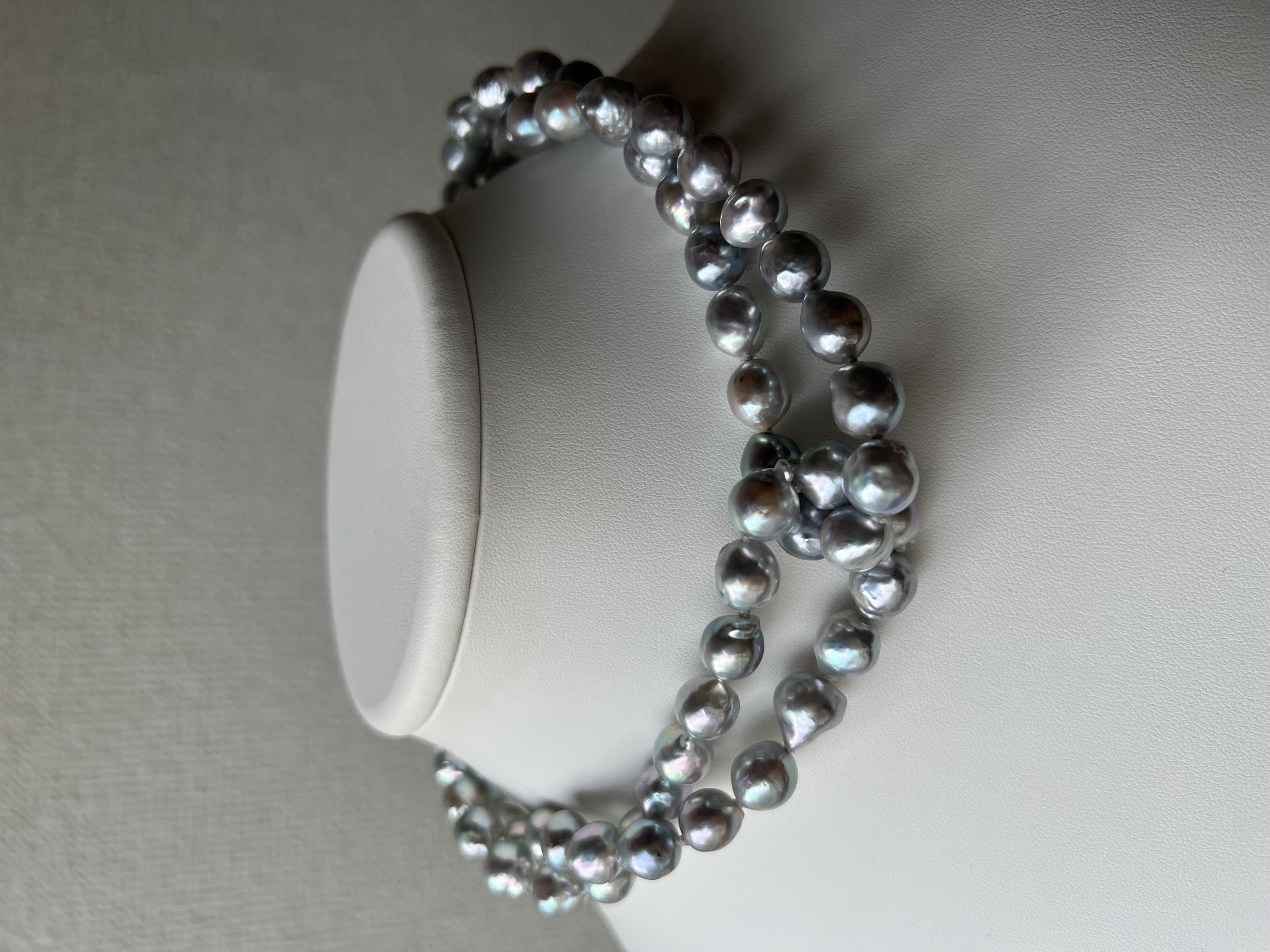 一連で付けるも良し。二連でゴージャスに首元を飾っても素敵。
